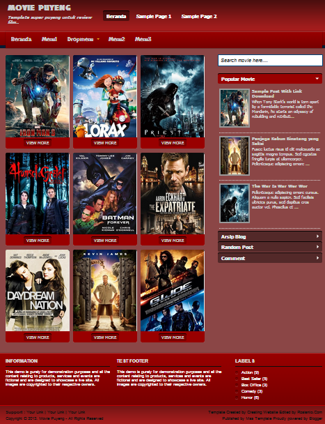 Template Movie Puyeng - Download : Free - Mã nguồn : Template Blogspot - Thiết kế : N/a - Kiểm duyệt: Chưa test |