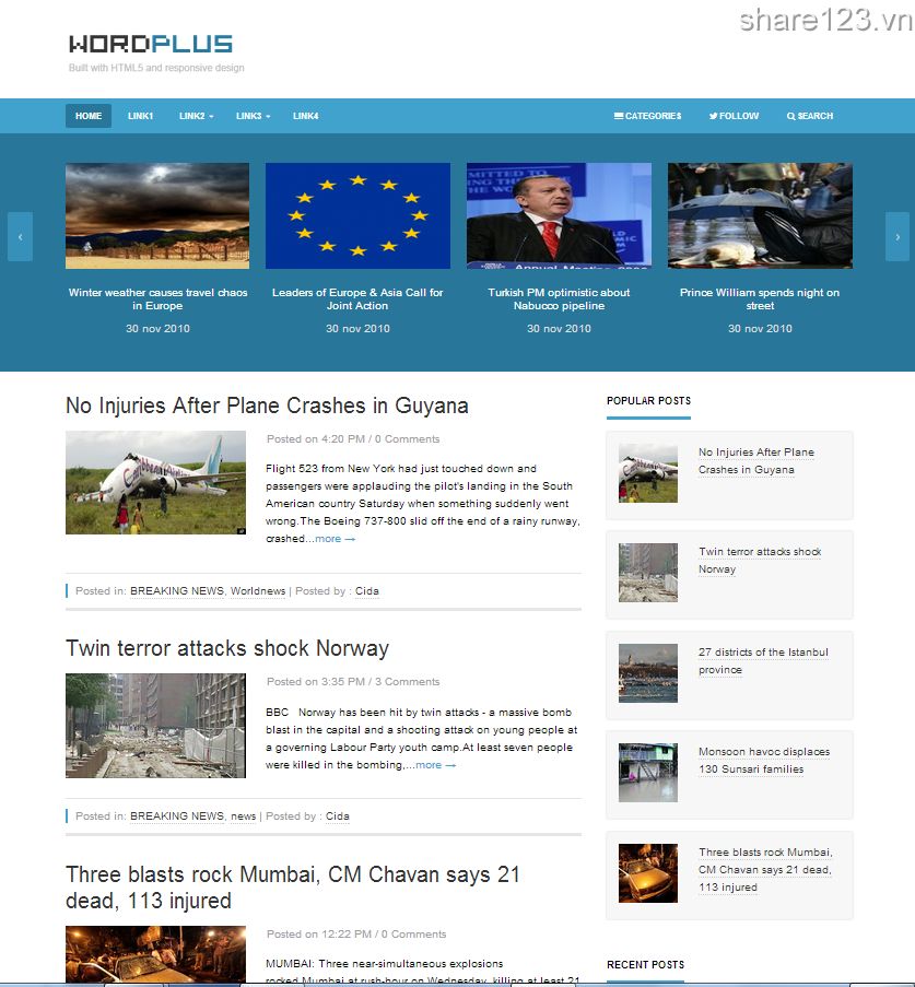 Wordplus - Mẫu template blogger tin tức, giải trí