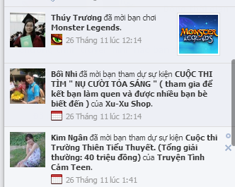 Vấn đề là do một số bạn bè trên Facebook của bạn có vẻ như rất thích thú với hàng đống game xã hội, từ Mafia Wars, Restaurant City, cho tới Farmville, hay các ứng dụng bói toán đang rất phổ biến và rồi họ liên tục gửi lời mời (invitation) cùng tham gia, đây một phần là do một số app bói toán này yêu cầu người dùng phải gửi thì mới có thể xem được kết quả. Chưa hết, một số người khác lại rất hay mời mọc bạn một event xa xôi nào đó mà chẳng bao giờ có liên quan gì đến mình.